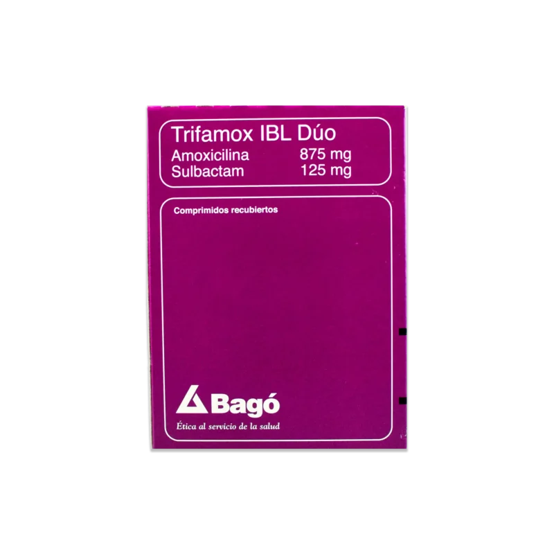 TRIFAMOX IBL DUO 875MG/125MG 14 COMPRIMIDO es un medicamento que contiene una combinación de amoxicilina y ácido clavulánico. Cada comprimido contiene 875 mg de amoxicilina y 125 mg de ácido clavulánico. Está indicado para el tratamiento de infecciones bacterianas causadas por microorganismos sensibles a esta combinación de antibióticos. TRIFAMOX IBL DUO actúa inhibiendo la síntesis de la pared celular bacteriana, lo que resulta en la muerte de las bacterias. Este medicamento se utiliza en el tratamiento de infecciones del tracto respiratorio, infecciones del tracto urinario, infecciones de la piel y tejidos blandos, infecciones dentales y otras infecciones causadas por bacterias sensibles. TRIFAMOX IBL DUO se presenta en forma de comprimidos para administración oral. Se recomienda tomar los comprimidos con alimentos para mejorar la absorción. La dosis y duración del tratamiento deben ser determinadas por un médico, según la gravedad de la infección y las características del paciente. Es importante seguir las indicaciones del médico y completar el tratamiento prescrito. TRIFAMOX IBL DUO puede causar efectos secundarios como diarrea, náuseas, vómitos, erupciones cutáneas y reacciones alérgicas. Si experimenta algún efecto secundario o reacción adversa, consulte a su médico. No se recomienda su uso en caso de alergia a la penicilina o a otros antibióticos beta-lactámicos. Mantenga este medicamento fuera del alcance de los niños y en un lugar fresco y seco. Recuerde que TRIFAMOX IBL DUO es un medicamento de venta bajo prescripción médica. Consulte a su médico antes de usarlo.